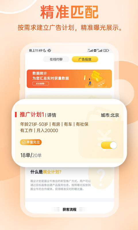 全面对接百度、腾讯、微信、抖音、头条、快手等线上流 量媒体,一站式广告投放获客管理,可根据后端转化数据 实时追踪前端推广效果,调整投放策略,让获客更精准。